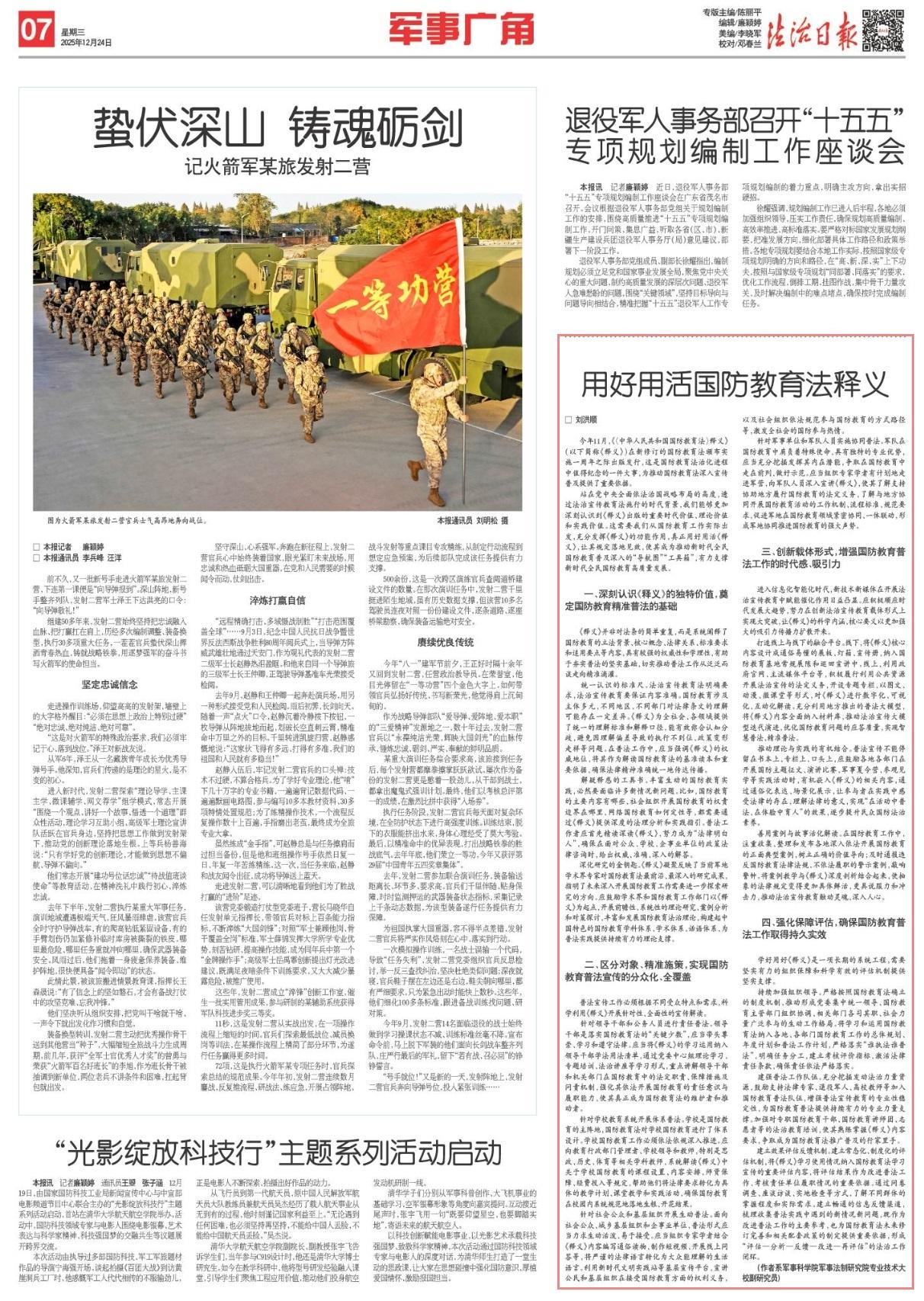 深化研究的金鑰匙。《釋義》凝聚反映了當(dāng)前軍地學(xué)術(shù)界專家對(duì)國防教育法最前沿、最深入的研究成果,指明了未來深入開展國防教育工作需要進(jìn)一步探索研究的方向。應(yīng)鼓勵(lì)學(xué)術(shù)界和國防教育工作部門以《釋義》為起點(diǎn),開展前瞻性、系統(tǒng)性的理論研究、案例分析和對(duì)策探討,豐富和發(fā)展國防教育法治理論,構(gòu)建起中國特色的國防教育學(xué)科體系、學(xué)術(shù)體系、話語體系,為普法實(shí)踐提供持續(xù)有力的理論支撐。