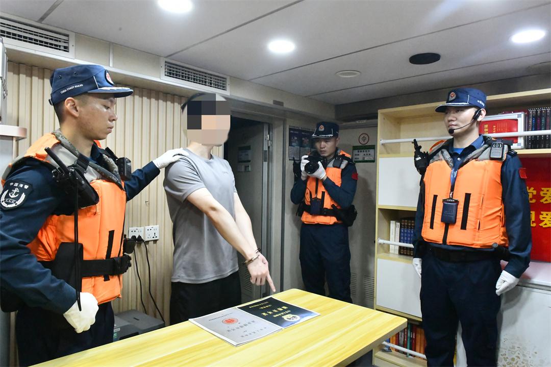 圖為防城港海警局登臨檢查長鯨16號泥駁船,查處一起未按照國家規(guī)定使用海洋傾廢在線監(jiān)控設備案。