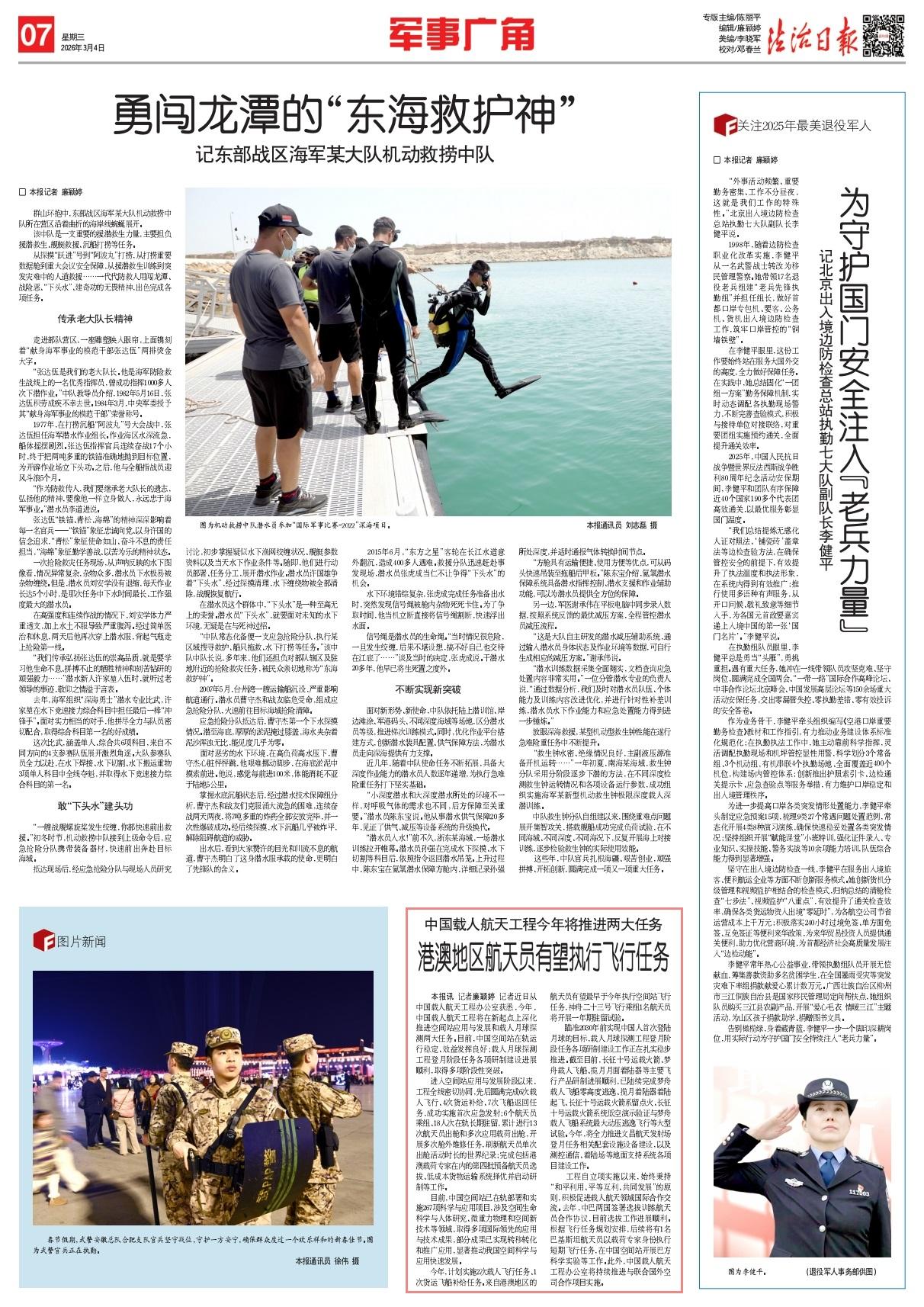 記者近日從中國載人航天工程辦公室獲悉,今年,中國載人航天工程將在新起點上深化推進空間站應(yīng)用與發(fā)展和載人月球探測兩大任務(wù)。目前,中國空間站在軌運行穩(wěn)定、效益發(fā)揮良好;載人月球探測工程登月階段任務(wù)各項研制建設(shè)進展順利,取得多項階段性突破。