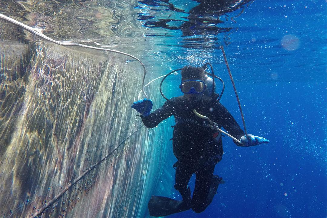 抵達(dá)現(xiàn)場(chǎng)后,經(jīng)應(yīng)急搶險(xiǎn)分隊(duì)與現(xiàn)場(chǎng)人員研究討論,初步掌握疑似水下漁網(wǎng)絞纏狀況、艦艇參數(shù)資料以及當(dāng)天水下作業(yè)條件等。隨即,他們進(jìn)行動(dòng)員部署、任務(wù)分工,展開(kāi)潛水作業(yè)。潛水員許國(guó)雄爭(zhēng)著“下頭水”,經(jīng)過(guò)探摸清理,水下纏繞物被全部清除,戰(zhàn)艦恢復(fù)航行。