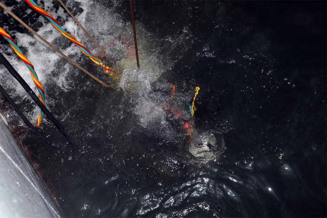 水下環(huán)境錯(cuò)綜復(fù)雜,張虎成完成任務(wù)準(zhǔn)備出水時(shí),突然發(fā)現(xiàn)信號(hào)繩被艙內(nèi)雜物死死卡住。為了爭(zhēng)取時(shí)間,他當(dāng)機(jī)立斷直接將信號(hào)繩割斷,快速浮出水面。
