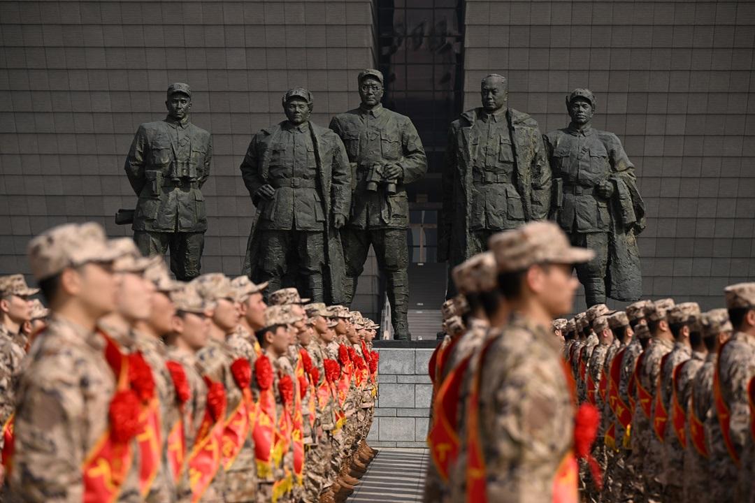 3月13日,安徽省合肥市舉行2026年上半年新兵入伍歡送儀式。圖為在渡江戰(zhàn)役紀(jì)念館解放廣場,身著迷彩服、胸前佩戴大紅花的新戰(zhàn)士整齊列隊(duì),帶著父老鄉(xiāng)親的囑托,奔赴軍營建功立業(yè)。