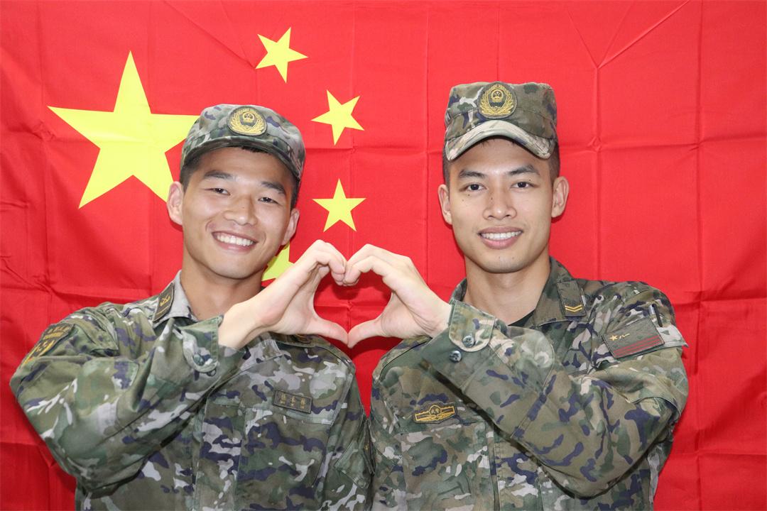 圖為譙禾林生前(左)與戰(zhàn)友在國旗前合影。蘇杰 陳書航 攝