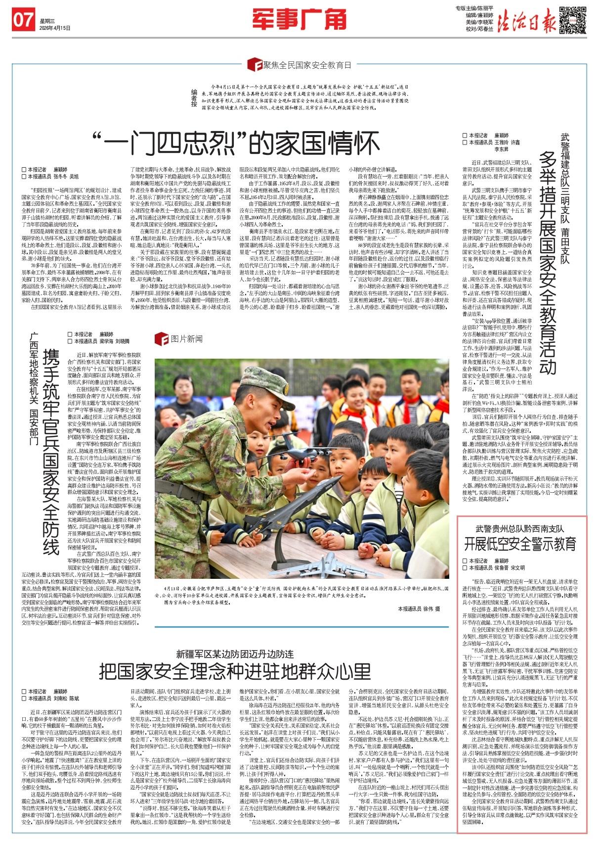 在全民國家安全教育日來臨之際,該支隊(duì)以此次事件為契機(jī),組織開展低空飛行器安全警示教育,讓低空安全理念深植每一名官兵心中。