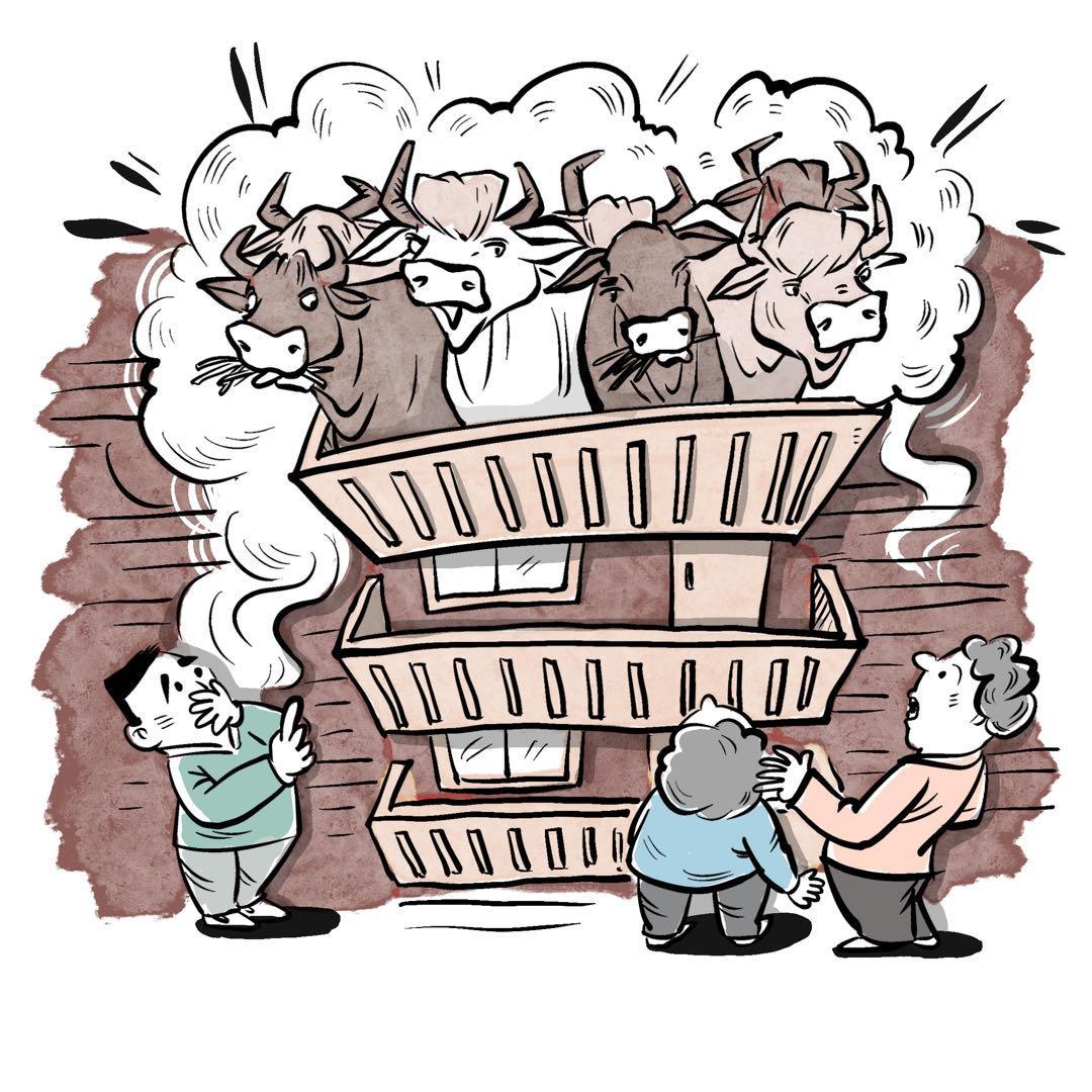 近日,在四川省南充市某小區(qū)內(nèi),一業(yè)主因在自家5樓陽臺養(yǎng)了7頭牛被投訴,引起廣泛關(guān)注。該小區(qū)居民稱,不僅能聽到牛叫聲,還能聞到牛糞的味道,給大家造成了很大困擾。目前,有關(guān)部門已將牛運走。