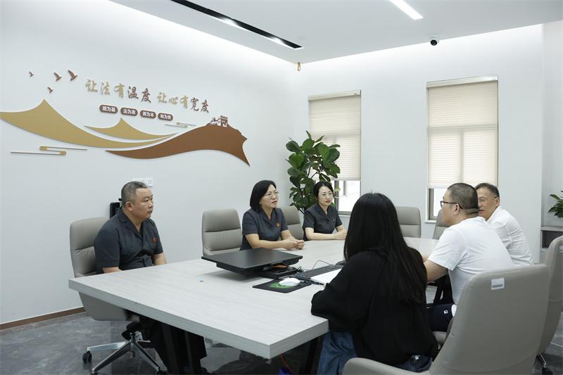 朱莉娜與合議庭成員向當(dāng)事人做釋法說(shuō)理工作