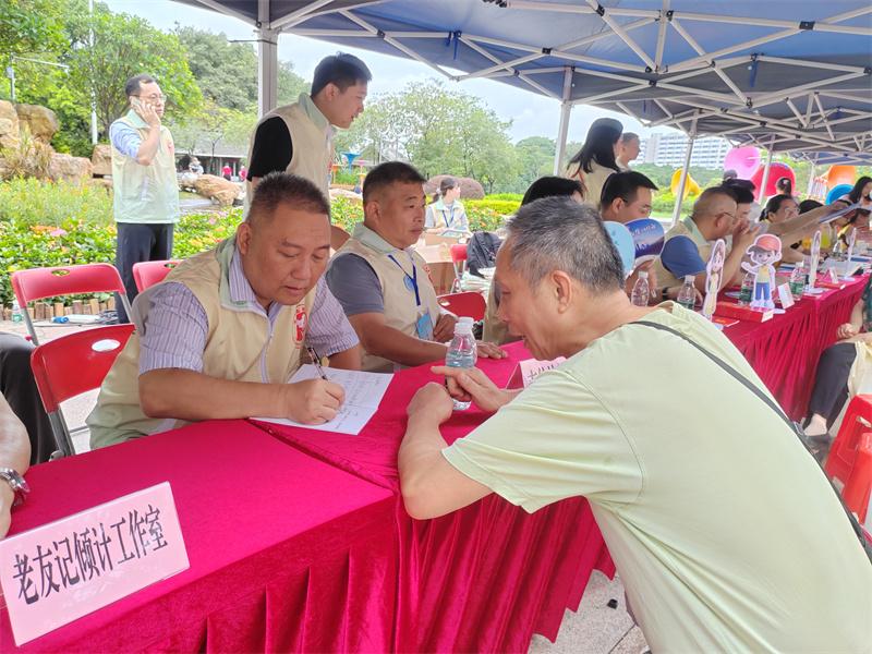 在活動(dòng)現(xiàn)場(chǎng),有一隊(duì)“志愿馬甲”格外亮眼,他們是來(lái)自廣東省信訪春雨志愿服務(wù)隊(duì)、廣州“穗信連心”志愿服務(wù)隊(duì)的信訪志愿者,以及來(lái)自大德、穗星、廣愛(ài)、普愛(ài)、北斗星等社工服務(wù)機(jī)構(gòu)的信訪社工。他們身著各自特色標(biāo)識(shí)服裝,在現(xiàn)場(chǎng)“擺攤設(shè)點(diǎn)”,面對(duì)面服務(wù)群眾,對(duì)有疑問(wèn)的群眾提供現(xiàn)場(chǎng)咨詢,對(duì)有訴求的群眾幫助梳理訴求,以真誠(chéng)溝通、真情服務(wù)換來(lái)群眾的滿意點(diǎn)贊。