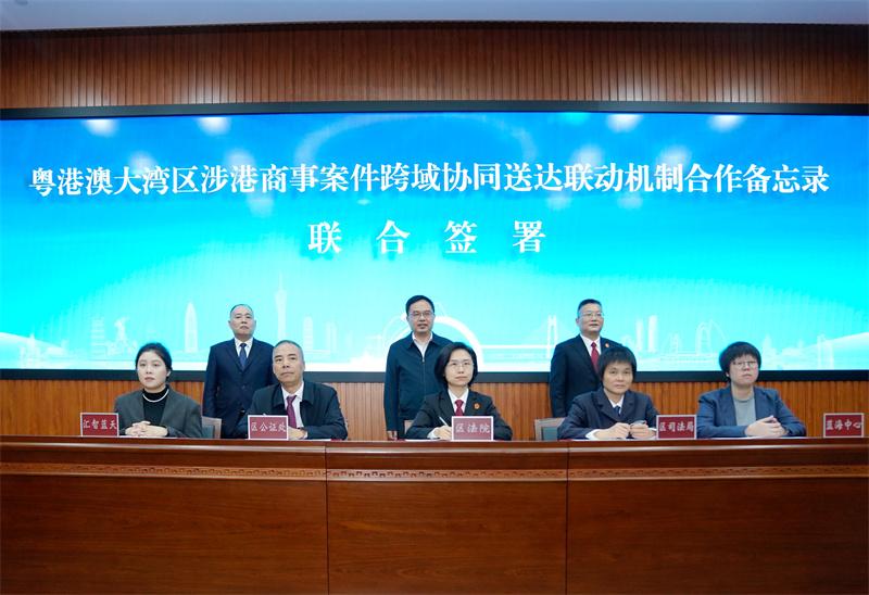 潮涌珠江,灣區(qū)同心。12月17日上午,廣東省廣州市南沙區(qū)人民法院(廣東自由貿(mào)易區(qū)南沙片區(qū)人民法院)攜手廣州市南沙區(qū)司法局、廣州市南沙公證處、深圳市藍(lán)海法律查明和商事調(diào)解中心、廣州市匯智藍(lán)天國際法律與商事服務(wù)中心暨“一帶一路”域外法查明(廣州)中心,共同簽署《關(guān)于構(gòu)建粵港澳大灣區(qū)涉港商事案件跨域協(xié)同送達(dá)聯(lián)動(dòng)機(jī)制合作備忘錄》(以下簡稱《備忘錄》)。