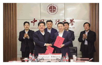 近日,中國政法大學(xué)與中國人民公安大學(xué)戰(zhàn)略合作協(xié)議簽約儀式在京舉行。中國政法大學(xué)黨委書記胡明、校長馬懷德、副校長馮世勇,中國人民公安大學(xué)黨委書記陳定武、校長曹詩權(quán)、副校長李守德出席簽約儀式,兩校各職能部門負責(zé)人及學(xué)院負責(zé)人一同參加簽約儀式。儀式由馮世勇主持。