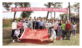 萬物勃發(fā)春光好,植樹添綠正當時。3月11日上午,中南財經(jīng)政法大學(xué)領(lǐng)導(dǎo)、職能部門負責(zé)人、教職工與多名學(xué)生代表來到繡球山,拿起鐵鍬,參加義務(wù)植樹活動?;顒蝇F(xiàn)場,大家分工明確,互幫互助,每個環(huán)節(jié)都一絲不茍,一片熱火朝天的景象。師生們用自己的勞動詮釋對大自然生命的關(guān)愛,并在相互配合中享受著一片綠色的春意。