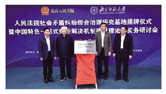 日前,由最高人民法院與北京師范大學共建的“人民法院社會矛盾糾紛綜合治理研究基地”揭牌儀式暨中國特色一站式糾紛解決機制建設理論與實務研討會在北京師范大學舉行。人民教育家、北京師范大學刑事法律科學研究院名譽院長高銘暄,中國法學會黨組成員、學術委員會主任張文顯,最高人民法院黨組成員、副院長姜偉,北京師范大學校長董奇出席揭牌儀式。揭牌儀式由北京師范大學法學院黨委書記、院長梁迎修主持。