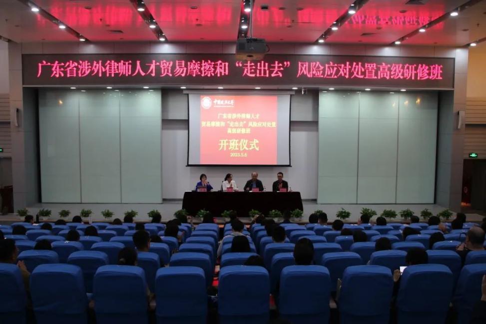 2023年5月6日上午,由廣東省司法廳、廣東省律師協(xié)會(huì)主辦,中國政法大學(xué)承辦的“廣東省涉外律師人才貿(mào)易摩擦和‘走出去’風(fēng)險(xiǎn)應(yīng)對處置高級(jí)研修班”在北京開班。廣東省司法廳律師工作管理處處長黃婷,四級(jí)調(diào)研員肖揚(yáng)帆,中國政法大學(xué)繼續(xù)教育學(xué)院院長兼中央政法培訓(xùn)學(xué)院執(zhí)行院長宋乃龍,廣東省律師協(xié)會(huì)副會(huì)長周璇出席開班儀式。開班儀式由中國政法大學(xué)中央政法培訓(xùn)學(xué)院執(zhí)行副院長鄭永吉主持。