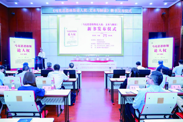 5月30日,由中央編譯出版社出版發(fā)行的《馬克思恩格斯論人權(quán):文本與解讀》新書發(fā)布儀式在西南政法大學(xué)舉行。該書由西南政法大學(xué)人權(quán)研究院教授張永和主編,于2018年開始啟動(dòng)編撰,歷時(shí)近5年,全書共31萬字。導(dǎo)論部分對(duì)馬克思主義人權(quán)思想的形成發(fā)展進(jìn)行梳理,主題部分選取30篇集中展現(xiàn)馬克思恩格斯人權(quán)思想的經(jīng)典著作,在保證原文論述邏輯結(jié)構(gòu)連貫的前提下,摘選其中重要的人權(quán)論述,并加以逐段解析,對(duì)馬克思主義人權(quán)思想經(jīng)典理論的本相與全貌進(jìn)行了努力還原。