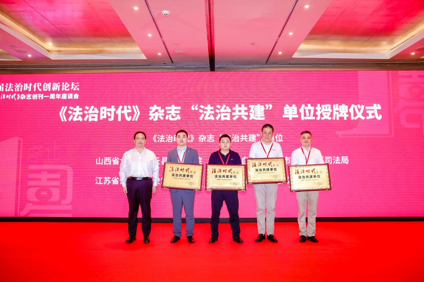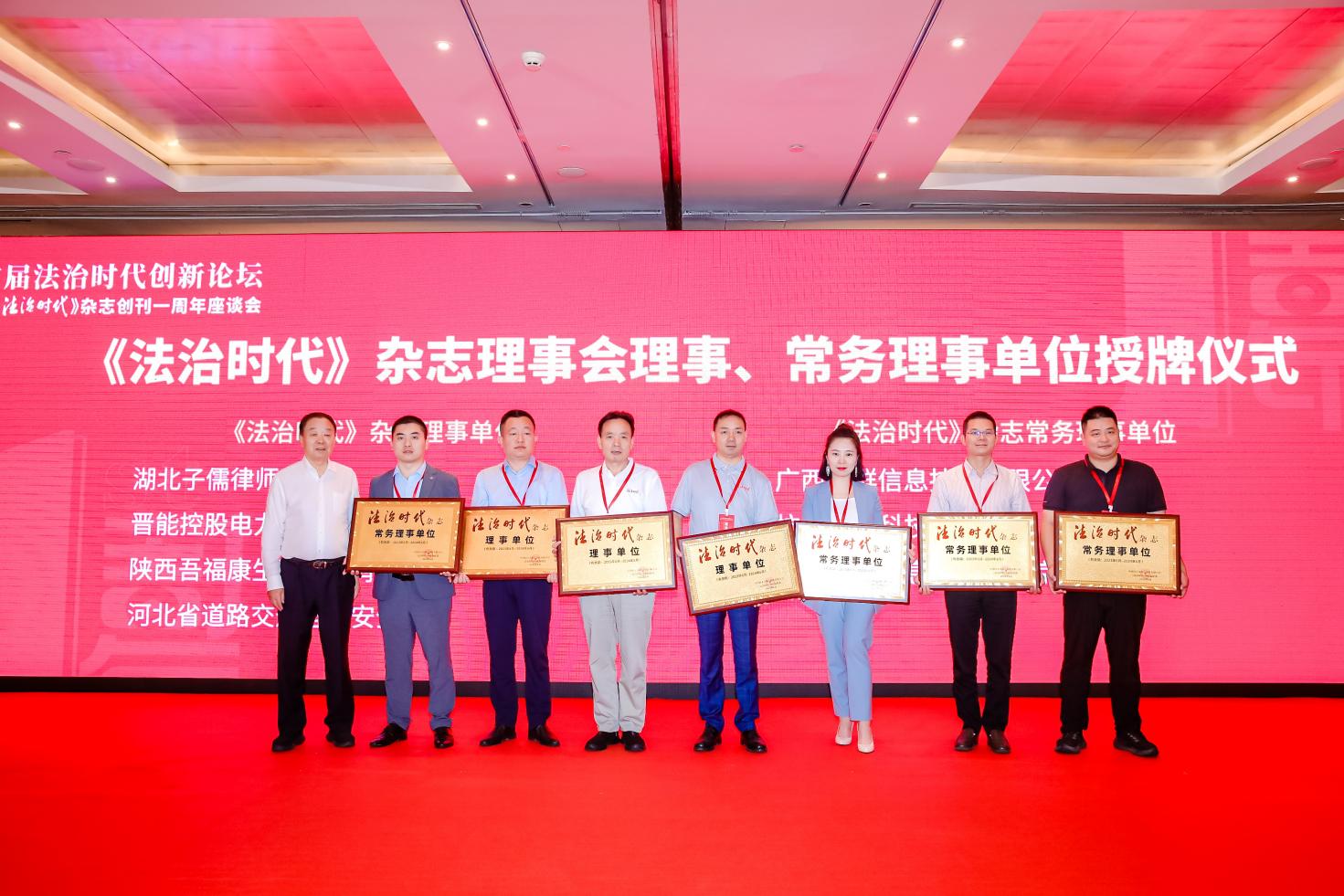 主旨演講環(huán)節(jié)結(jié)束后,進(jìn)行了《法治時(shí)代》雜志理事會(huì)理事單位、常務(wù)理事單位、《法治時(shí)代》雜志“法治共建”單位聘任儀式。第十二屆全國人大法律委主任委員喬曉陽、中國出版集團(tuán)有限公司總經(jīng)理、黨組副書記常勃分別為理事單位、常務(wù)理事單位和“法治共建”單位授牌。