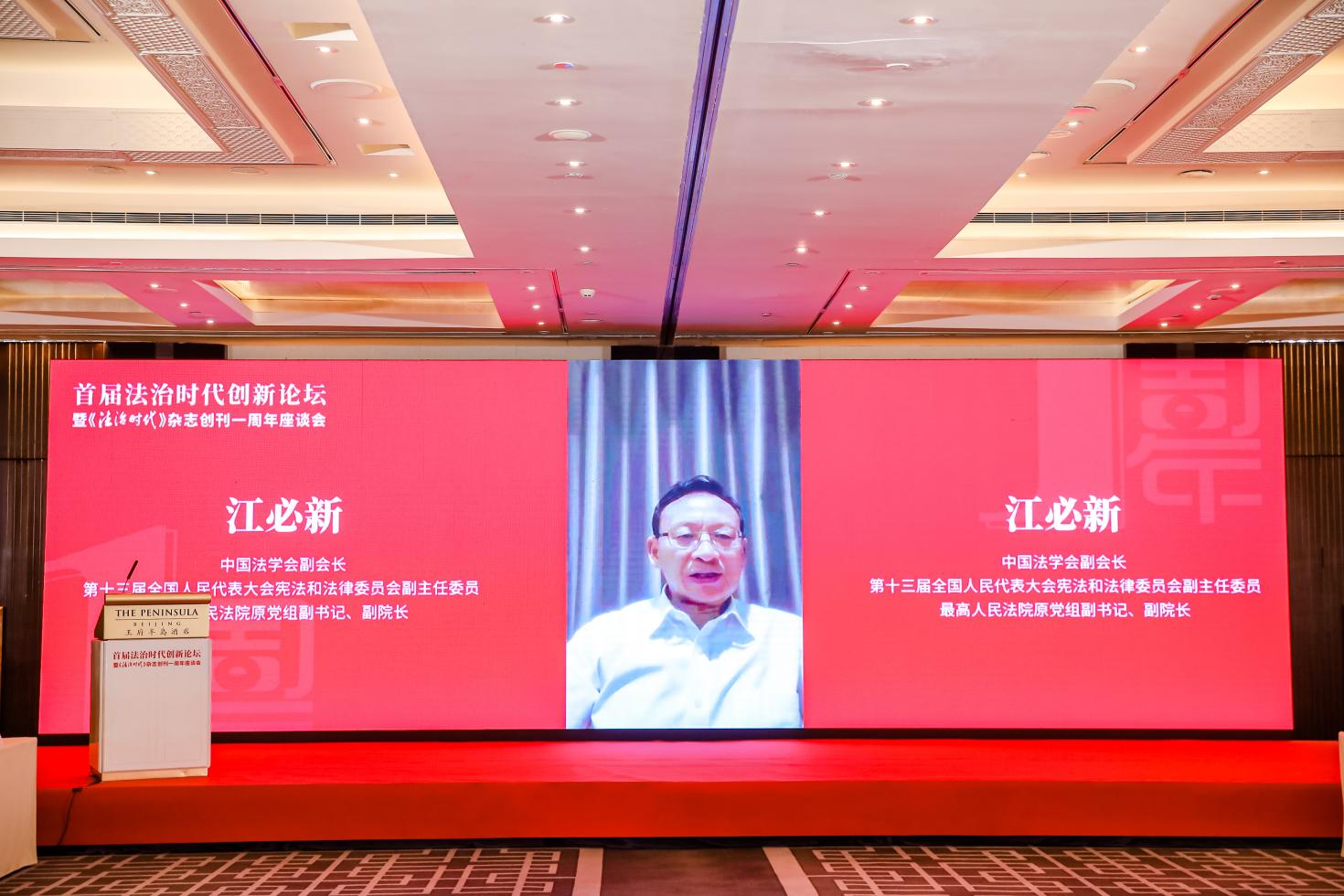 中國法學(xué)會(huì)副會(huì)長,第十三屆全國人民代表大會(huì)憲法和法律委員會(huì)副主任委員,最高人民法院原黨組副書記、副院長江必新在視頻致辭中表示,《法治時(shí)代》需要守正,更需要?jiǎng)?chuàng)新。法治必須與時(shí)俱進(jìn),必須不斷地創(chuàng)新,真正對(duì)我們?nèi)娼ㄔO(shè)社會(huì)主義現(xiàn)代化國家提供更加有力的保障。