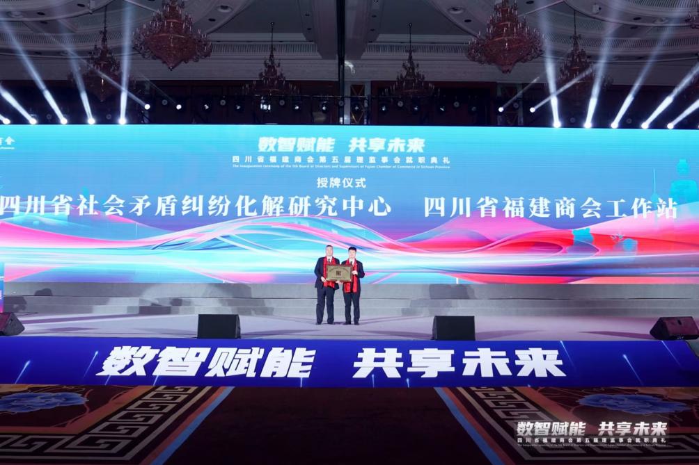 近日,四川省福建商會(huì)第五屆理監(jiān)事會(huì)就職典禮在成都舉行,新一屆理監(jiān)事會(huì)成員集體亮相,新的征程就此揚(yáng)帆起航。典禮上,四川省福建商會(huì)為閩商調(diào)解中心、四川省社會(huì)矛盾糾紛化解研究中心四川省福建商會(huì)工作站授牌,這意味著四川省福建商會(huì)法治保障得到進(jìn)一步夯實(shí),商會(huì)以法治思維引領(lǐng)企業(yè)發(fā)展之路至此踏上了新征程。