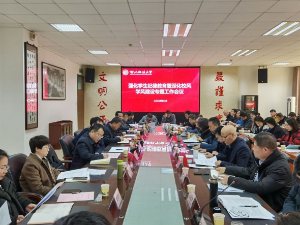 為進一步落實立德樹人根本任務(wù),強化學生紀律教育,優(yōu)化校風學風建設(shè)工作,深入推進本科教育教學評估工作提效增質(zhì),近日,強化學生紀律教育暨深化校風學風建設(shè)專題工作會議在西北政法大學舉行。