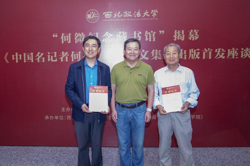 現(xiàn)場,親屬代表張振林捐贈(zèng)了何微手稿和書籍等一批資料。西北政法大學(xué)為圖書捐贈(zèng)方人民日?qǐng)?bào)出版社、新華出版社頒發(fā)了捐贈(zèng)證書。