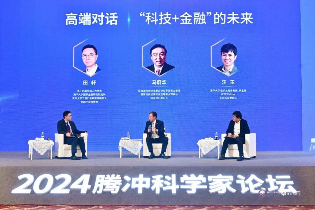 “‘科技+金融’的未來(lái)”高端對(duì)話(huà)環(huán)節(jié),第十四屆全國(guó)人大代表、清華大學(xué)國(guó)家金融研究院院長(zhǎng)、清華大學(xué)五道口金融學(xué)院副院長(zhǎng)、金融學(xué)講席教授田軒,聯(lián)合國(guó)可持續(xù)發(fā)展目標(biāo)指導(dǎo)委員會(huì)委員、國(guó)家科技成果轉(zhuǎn)化引導(dǎo)基金理事長(zhǎng)、招商銀行原行長(zhǎng)馬蔚華,清華大學(xué)電子工程系教授、系主任,IEEE Fellow,無(wú)問(wèn)芯穹發(fā)起人汪玉分別發(fā)表觀(guān)點(diǎn)。