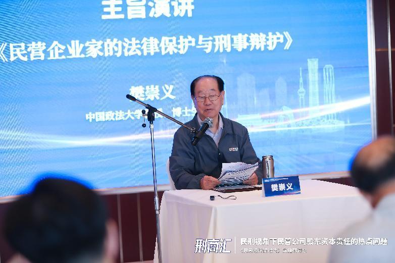 研討會大咖云集,從不同角度解讀關(guān)鍵議題。主旨演講環(huán)節(jié),刑訴法學(xué)泰斗、中國政法大學(xué)樊崇義教授以《民營企業(yè)家的法律保護(hù)與刑事辯護(hù)》為題,解析民營企業(yè)涉刑責(zé)任法律保護(hù)的五大原則,主張堅(jiān)持“謙抑、審慎、善意”理念慎用刑事手段解決經(jīng)濟(jì)糾紛。