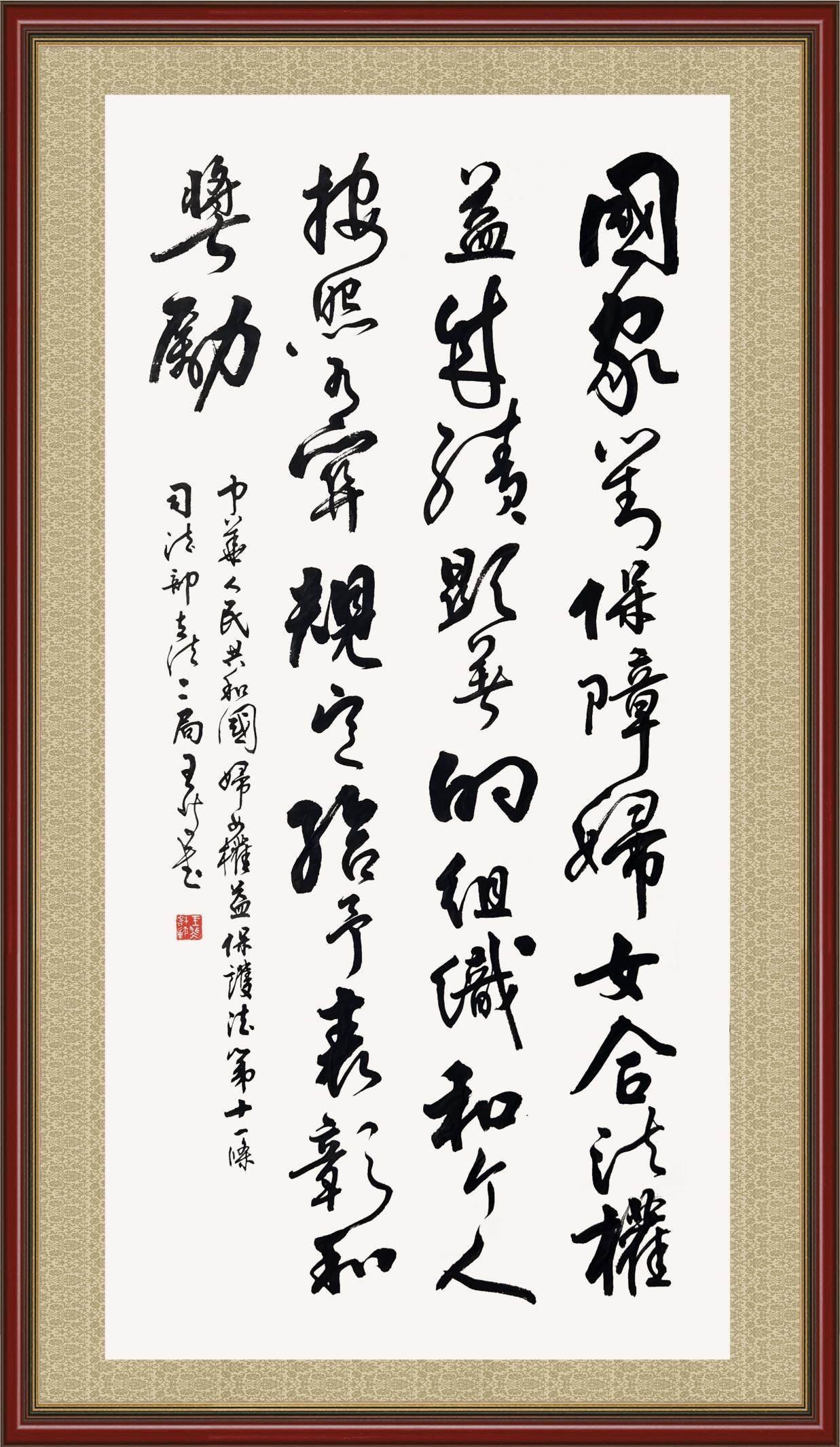 2020年7月11日,由法治日?qǐng)?bào)社主辦的“書·法”系列活動(dòng)正式啟動(dòng),先后書寫《中華人民共和國(guó)民法典》《中華人民共和國(guó)憲法》《中華人民共和國(guó)民營(yíng)經(jīng)濟(jì)促進(jìn)法》《中華人民共和國(guó)法治宣傳教育法》等21部法律法規(guī)。