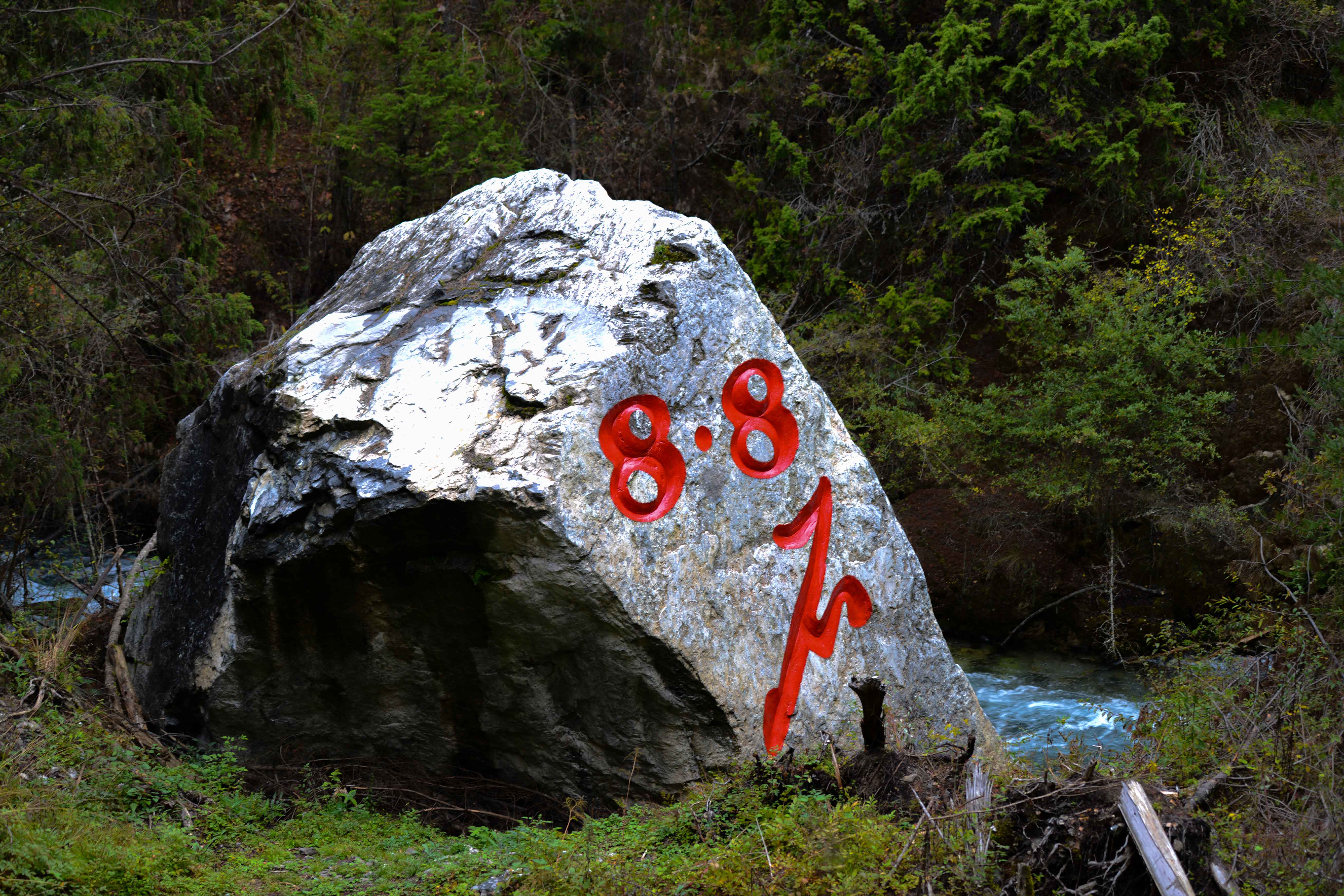 兩年前地震中垮落的巨石清晰記載著當時的印記。