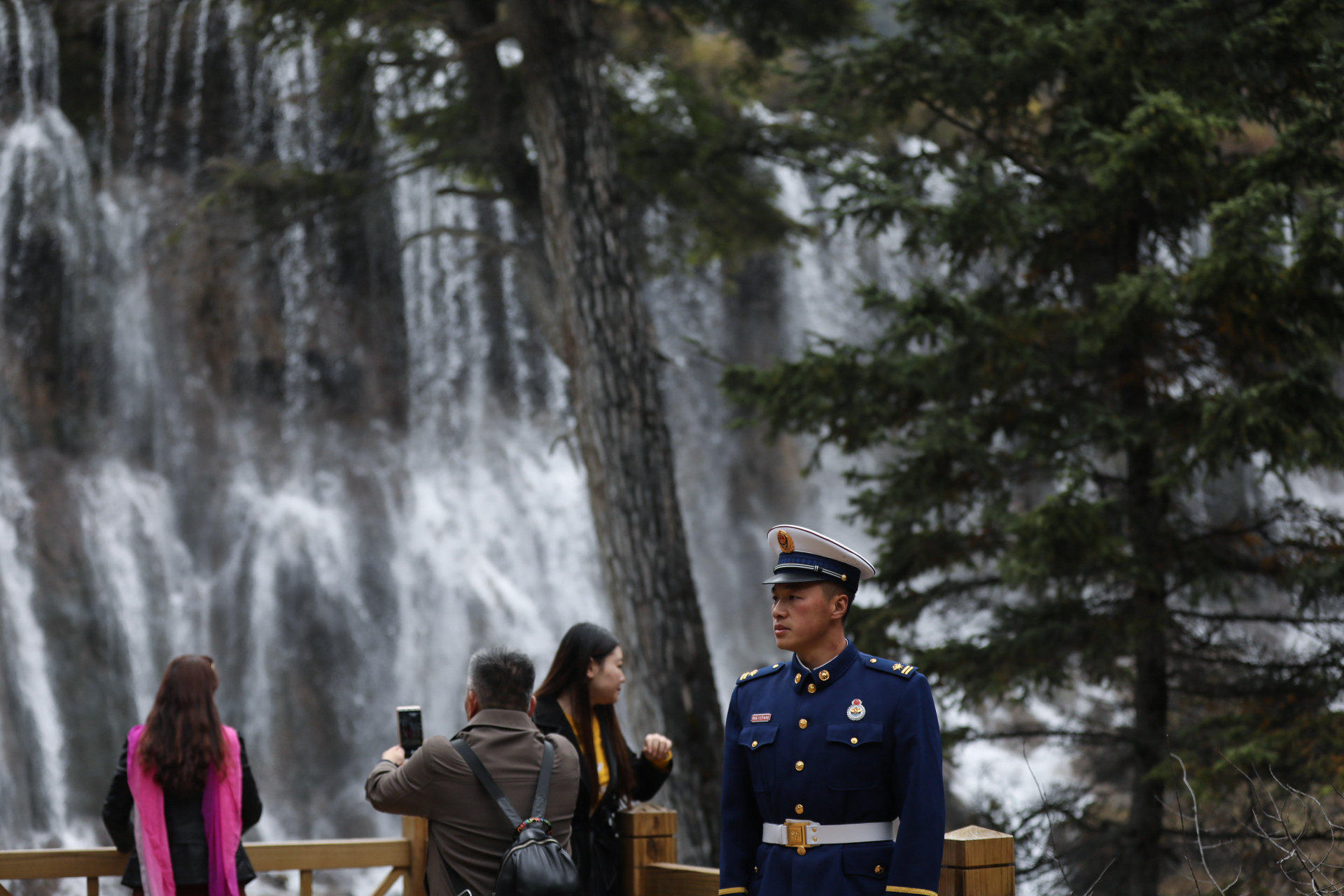 澤汪塔像往常一樣出現(xiàn)在景區(qū)的棧道上,他和隊友巡邏在游客最多的長海和五彩池附近,擔(dān)負著周邊的森林防火工作和游客安全。