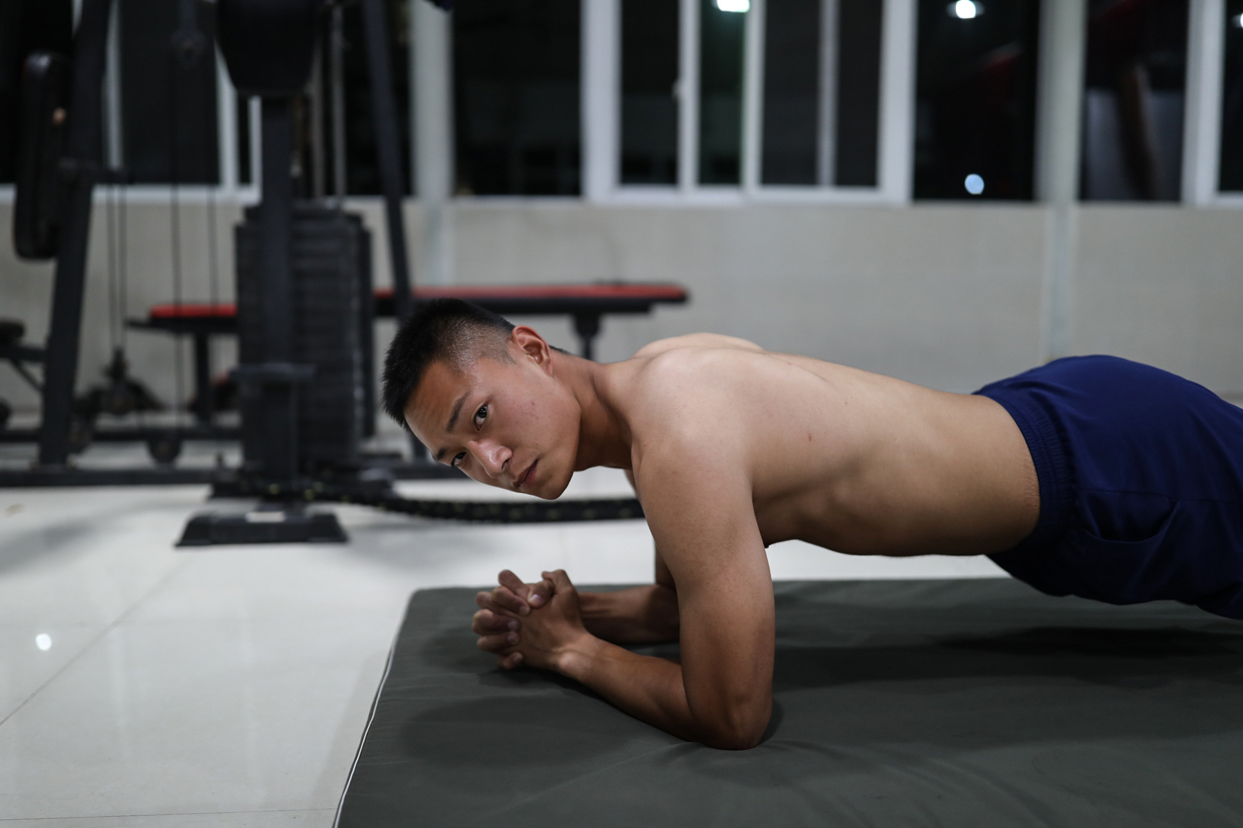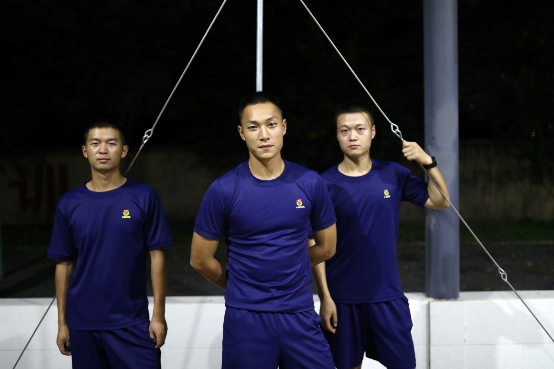 10月4日晚上,新消防員田祥像往常一樣來到訓練大棚開始熱身,雖然國慶放假休息,但他所在的體能“小分隊”沒有一個人缺席。田祥很喜歡自己訓練后大汗淋漓的模樣,他覺得這是一個男人最帥的時候。