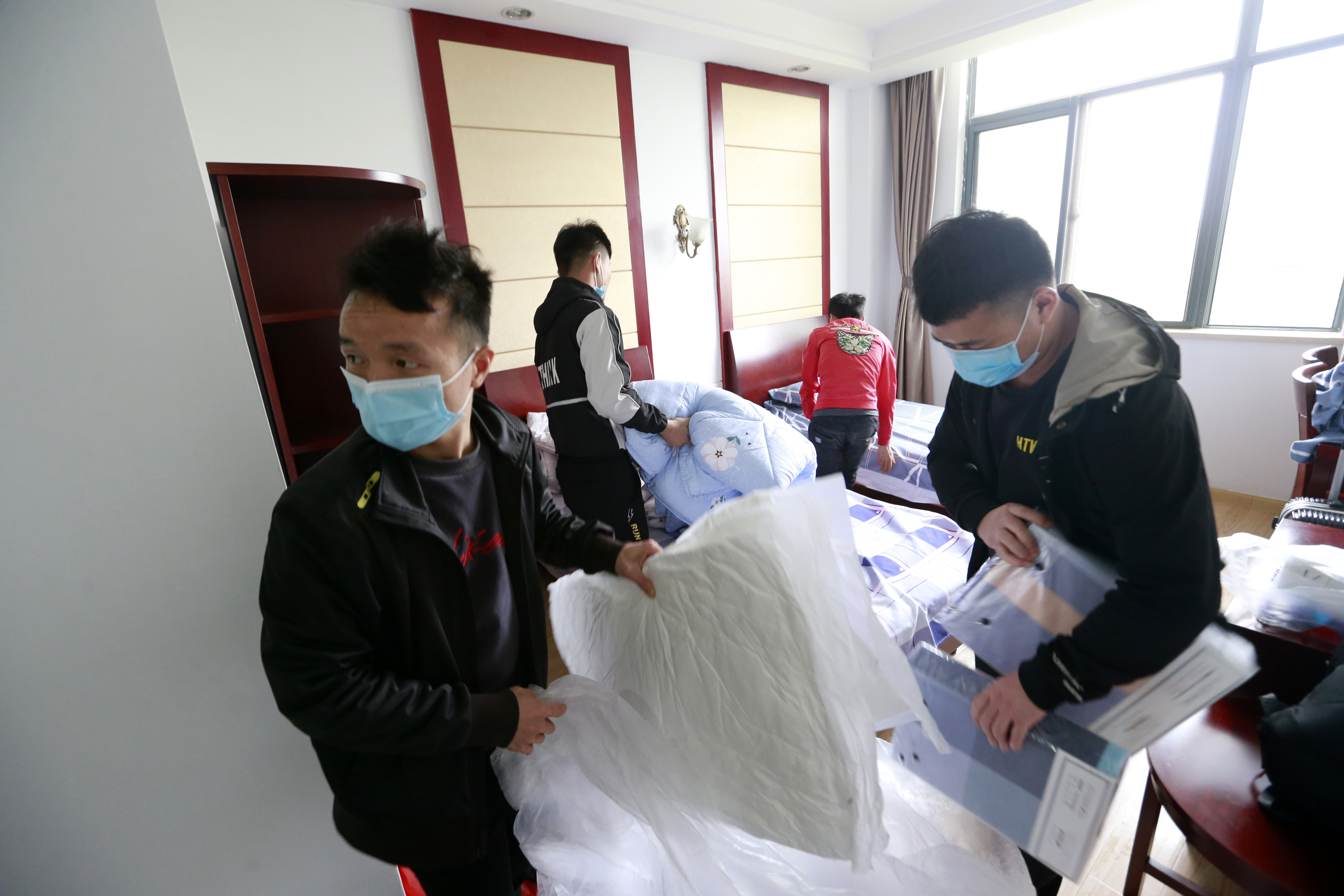 4月19日,來南京之前,南京港出入境邊防檢查站工作人員就叮囑楊校詢和小伙伴們只需帶上換洗衣物,其他的被褥和生活用品都買好了,他們在房間整理新被褥。