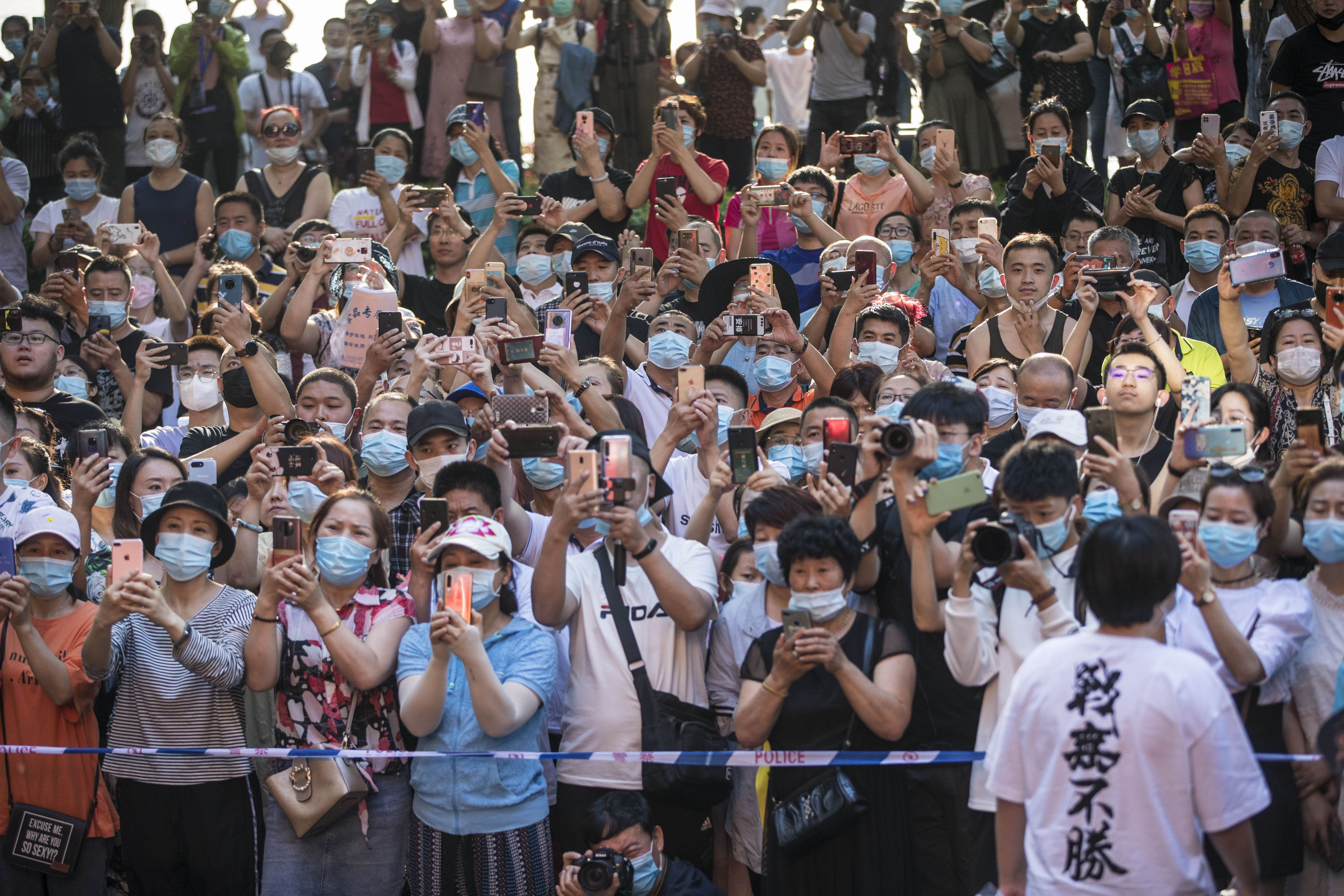 7月8日,在黑龍江省哈爾濱市第三中學考點外,家長們迎接考生。