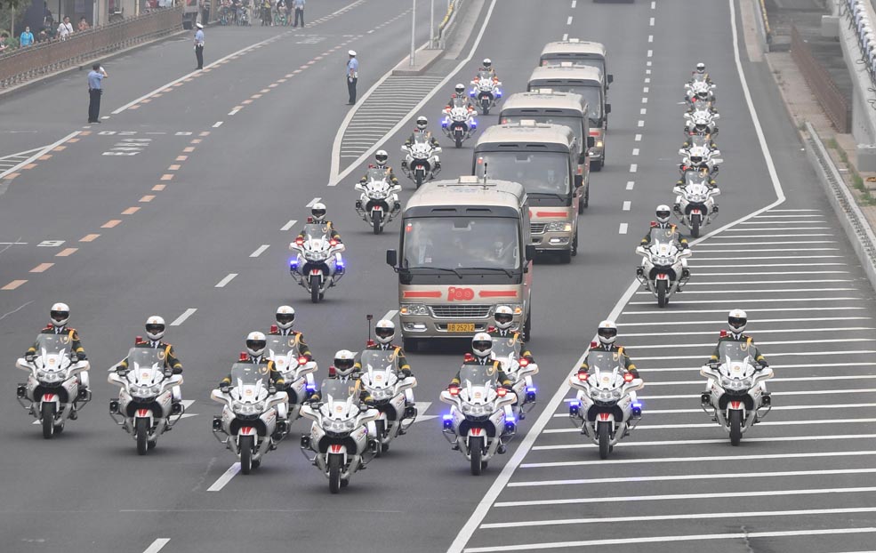 6月29日,慶祝中國共產黨成立100周年“七一勛章”頒授儀式在北京人民大會堂金色大廳隆重舉行。這是“七一勛章”獲得者集體乘坐禮賓車,由國賓護衛(wèi)隊護衛(wèi)前往人民大會堂。