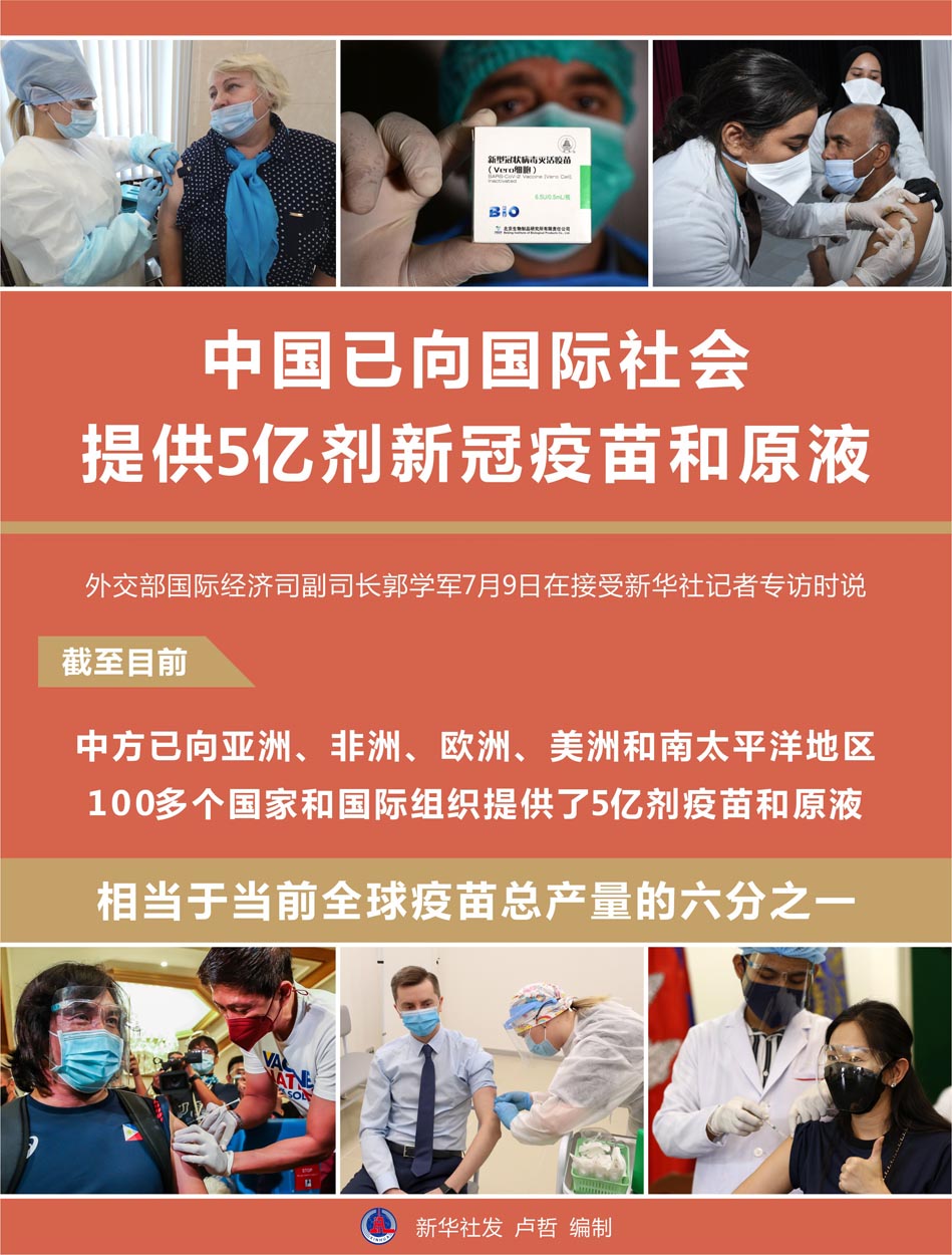 圖表:中國已向國際社會提供5億劑新冠疫苗和原液