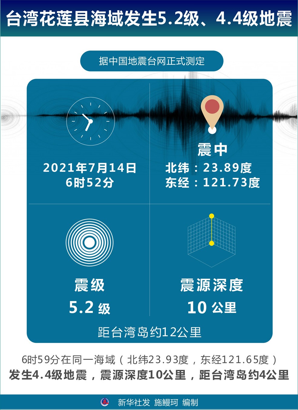 圖表:臺(tái)灣花蓮縣海域發(fā)生5.2級(jí)、4.4級(jí)地震