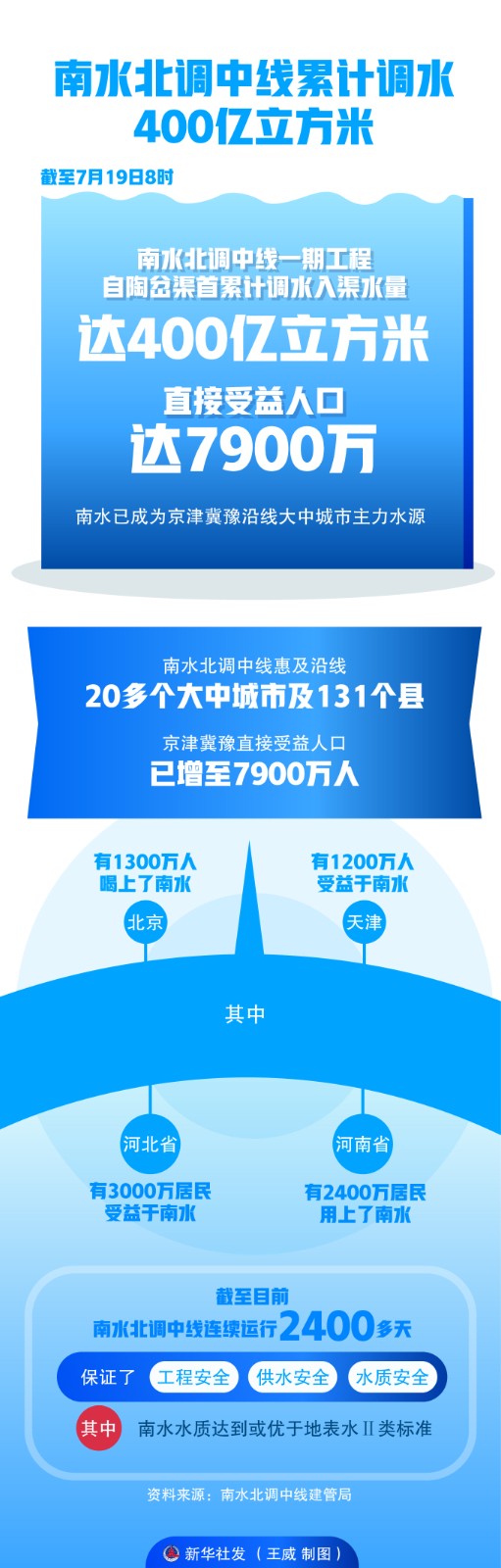 圖表:南水北調(diào)中線累計(jì)調(diào)水400億立方米