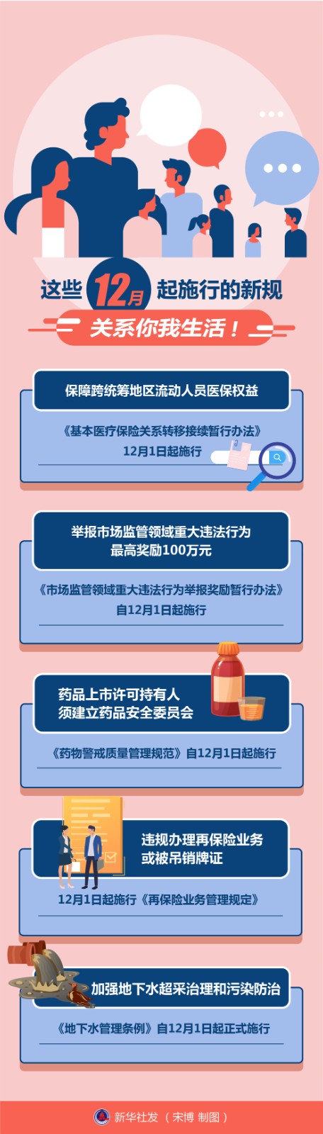 當時光的腳步來到2021年的最后一個月,一批影響你我的重要新規(guī)也將開始施行。流動人員的醫(yī)保權益更有保障,舉報市場監(jiān)管領域重大違法行為可獲獎勵,藥品安全相關管理規(guī)范進一步完善……美好的生活,見證法治的進步。