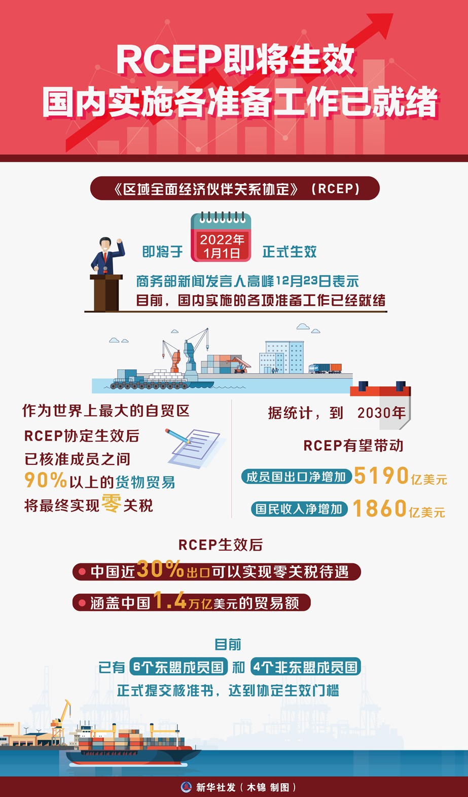 《區(qū)域全面經(jīng)濟(jì)伙伴關(guān)系協(xié)定》(RCEP)即將于2022年1月1日正式生效。商務(wù)部新聞發(fā)言人高峰12月23日表示,目前,國內(nèi)實(shí)施的各項(xiàng)準(zhǔn)備工作已經(jīng)就緒。