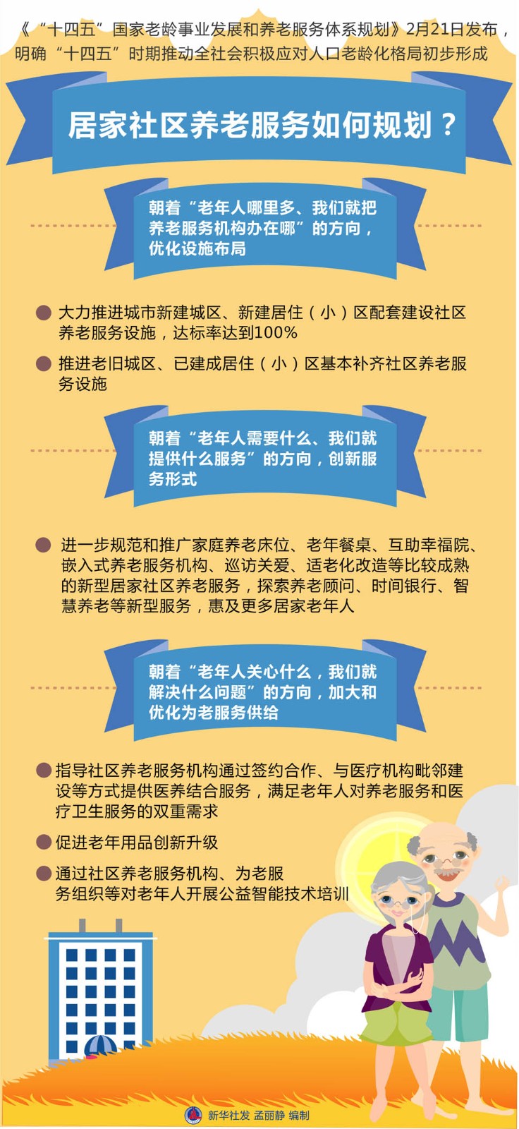 《“十四五”國(guó)家老齡事業(yè)發(fā)展和養(yǎng)老服務(wù)體系規(guī)劃》2月21日發(fā)布,明確“十四五”時(shí)期推動(dòng)全社會(huì)積極應(yīng)對(duì)人口老齡化格局初步形成。圍繞相關(guān)熱點(diǎn)問(wèn)題,國(guó)家發(fā)展改革委、民政部、國(guó)家衛(wèi)生健康委、國(guó)家醫(yī)保局等部門(mén)有關(guān)負(fù)責(zé)同志回答了記者提問(wèn)。將從三方面推動(dòng)居家和社區(qū)養(yǎng)老服務(wù)進(jìn)入高質(zhì)量發(fā)展“2.0”版本。