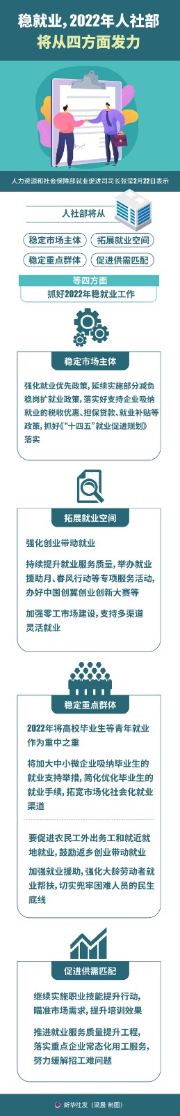 人力資源和社會(huì)保障部就業(yè)促進(jìn)司司長(zhǎng)張瑩2月22日表示,人社部將從穩(wěn)定市場(chǎng)主體、拓展就業(yè)空間、穩(wěn)定重點(diǎn)群體、促進(jìn)供需匹配等四方面抓好2022年穩(wěn)就業(yè)工作。