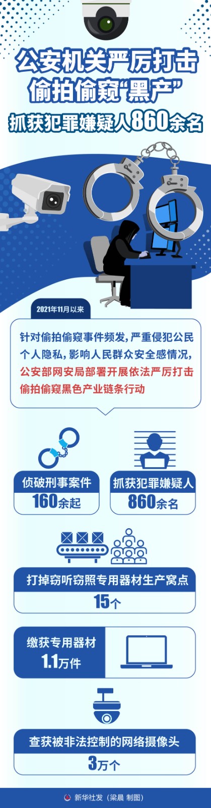圖表:公安機(jī)關(guān)嚴(yán)厲打擊偷拍偷窺“黑產(chǎn)” 抓獲犯罪嫌疑人860余名