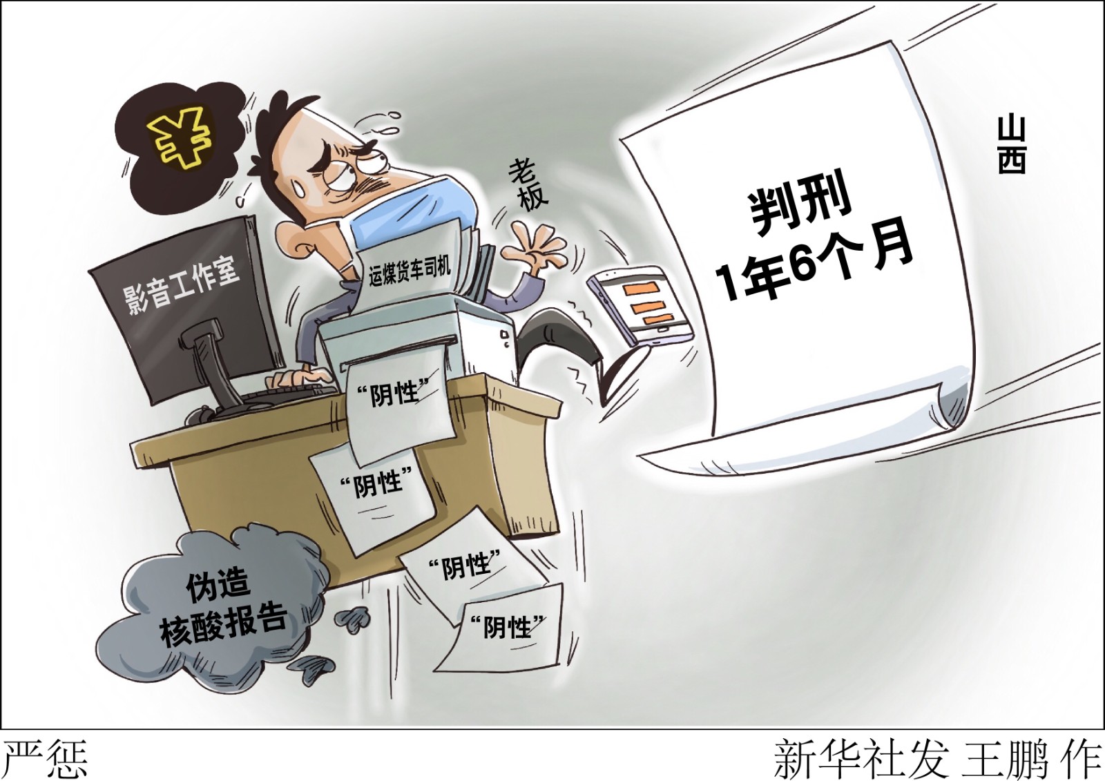 山西省檢察院日前發(fā)布第一批山西檢察機(jī)關(guān)依法辦理涉新冠肺炎疫情典型案例。其中一名影音工作室老板為252名運(yùn)煤貨車(chē)司機(jī)偽造核酸檢測(cè)報(bào)告621份,獲刑1年6個(gè)月。