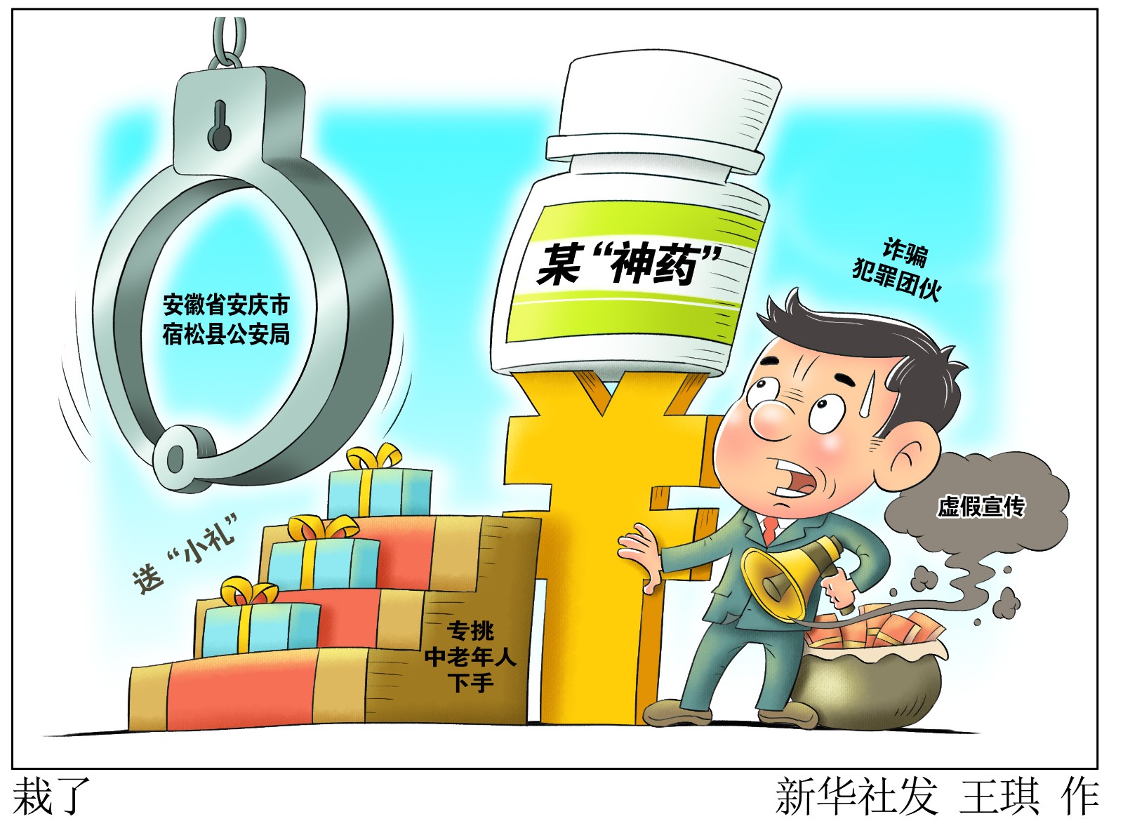 評(píng)書機(jī)、老人鞋等“小禮”請(qǐng)先笑納,“包治百病”的“神藥”快來試試?小心“騙你沒商量”!記者日前從安徽省安慶市宿松縣公安局了解到,當(dāng)?shù)鼐酱虻粢粋€(gè)向中老年群體虛假宣傳兜售藥品進(jìn)行詐騙的犯罪團(tuán)伙,全國(guó)多地?cái)?shù)千人上當(dāng),涉案金額近千萬元。
