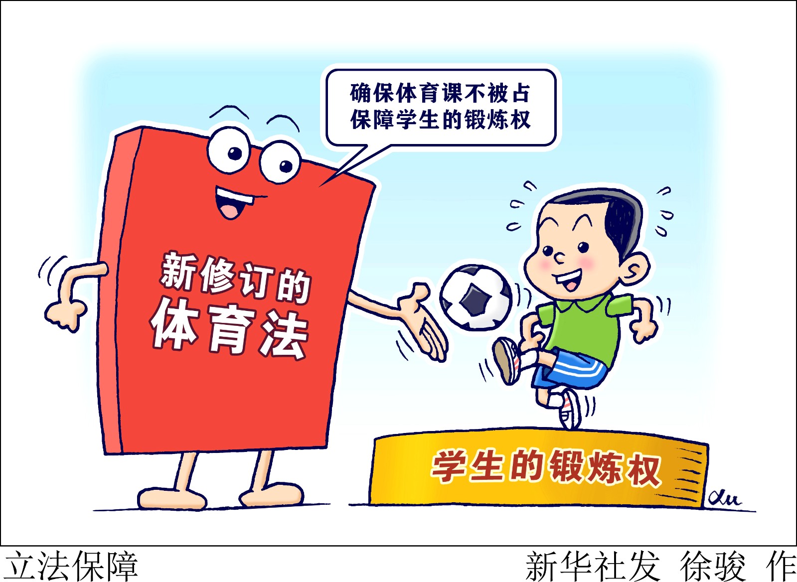 新修訂的體育法近日頒布,其中,確保體育課不被占、在校每天鍛煉不少于一小時等條款,充分體現(xiàn)了加強(qiáng)青少年身體素質(zhì)、促進(jìn)青少年全面發(fā)展的國家意志。