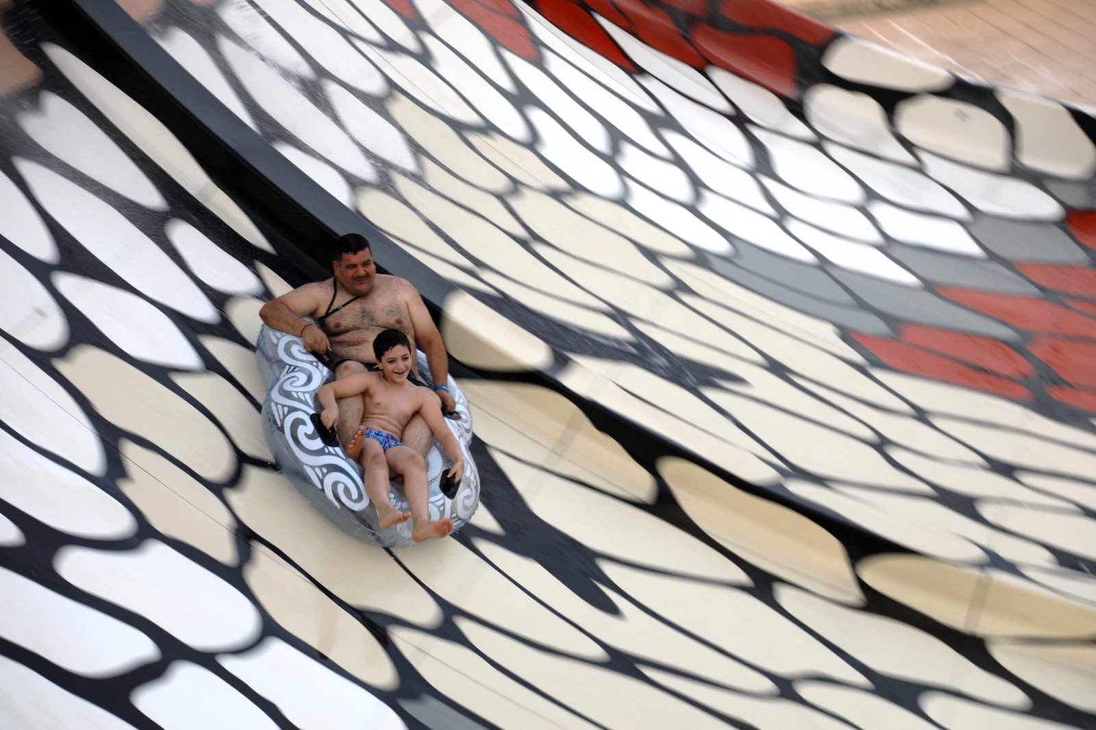 6月20日,一對(duì)父子在伊拉克巴格達(dá)的一處泳池休閑消夏。