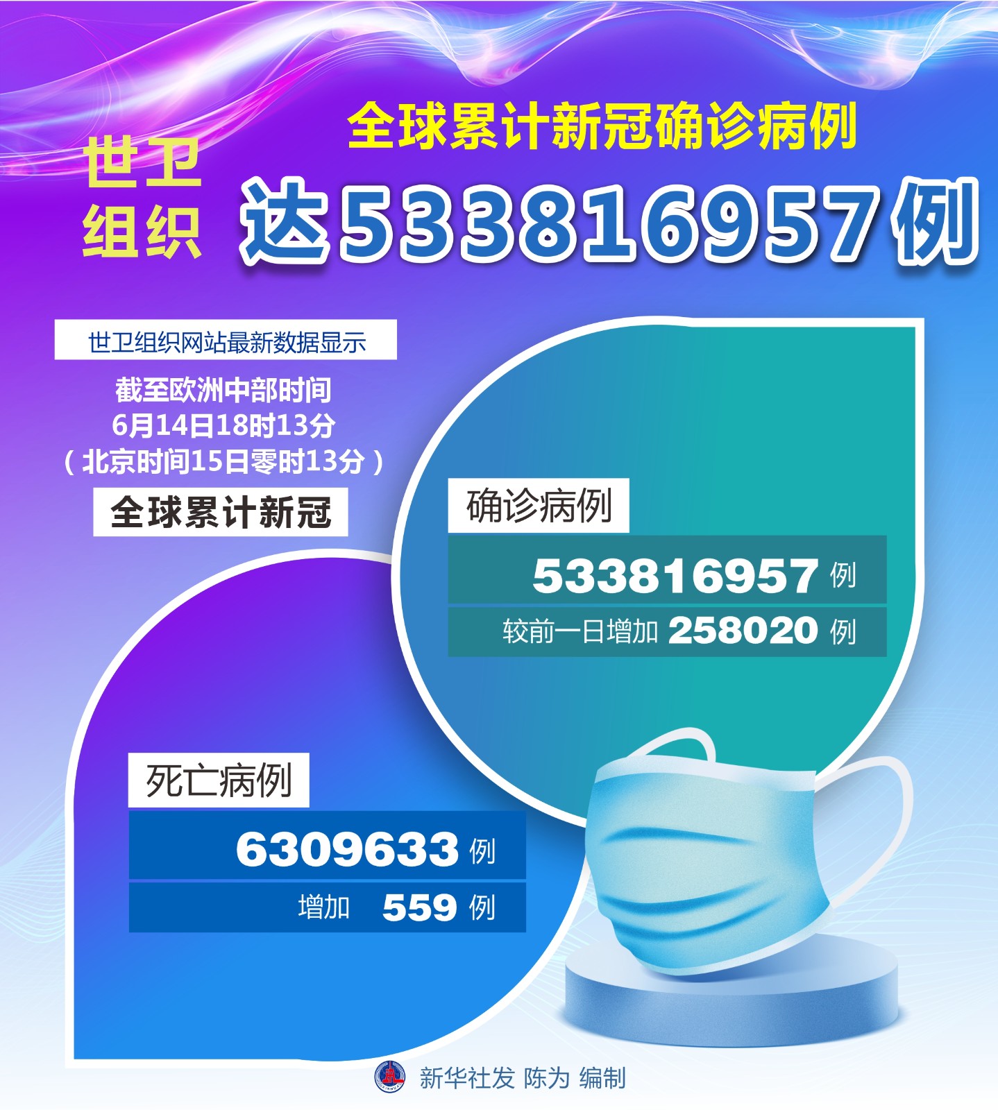 圖表:世衛(wèi)組織:全球累計(jì)新冠確診病例達(dá)533816957例