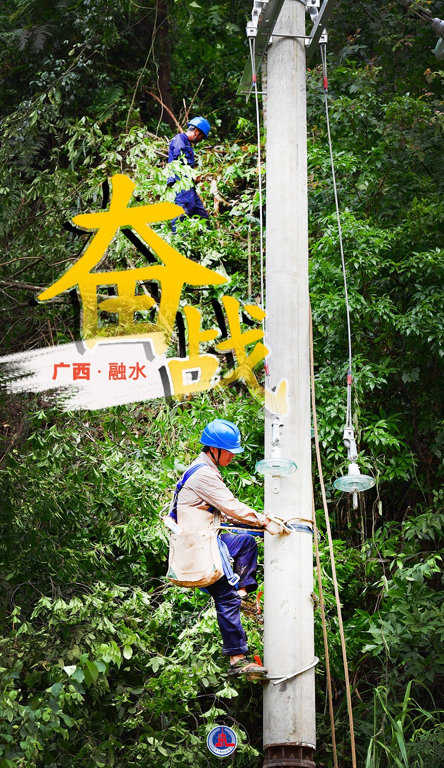 6月19日,在廣西融水苗族自治縣香粉鄉(xiāng),工作人員在搶修線路。