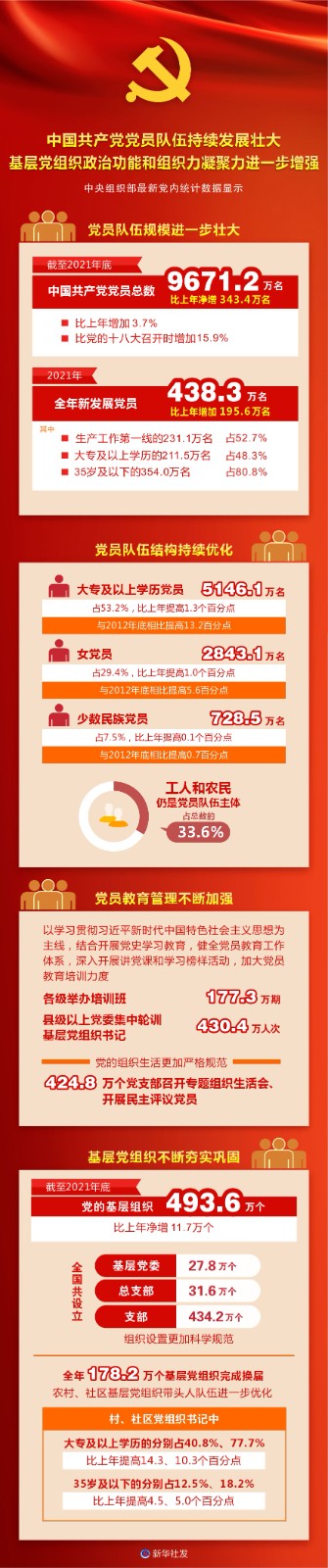 圖表:中國共產(chǎn)黨黨員隊(duì)伍持續(xù)發(fā)展壯大 基層黨組織政治功能和組織力凝聚力進(jìn)一步增強(qiáng)