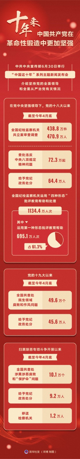 中共中央宣傳部6月30日舉行“中國這十年”系列主題新聞發(fā)布會,介紹堅持黨的全面領(lǐng)導(dǎo)和全面從嚴(yán)治黨有關(guān)情況。中央紀(jì)委國家監(jiān)委宣傳部部長王建新表示,十年浴火淬煉,全面從嚴(yán)治黨政治引領(lǐng)和政治保障作用充分發(fā)揮,管黨治黨寬松軟狀況得到根本扭轉(zhuǎn),我們黨在革命性鍛造中更加堅強。