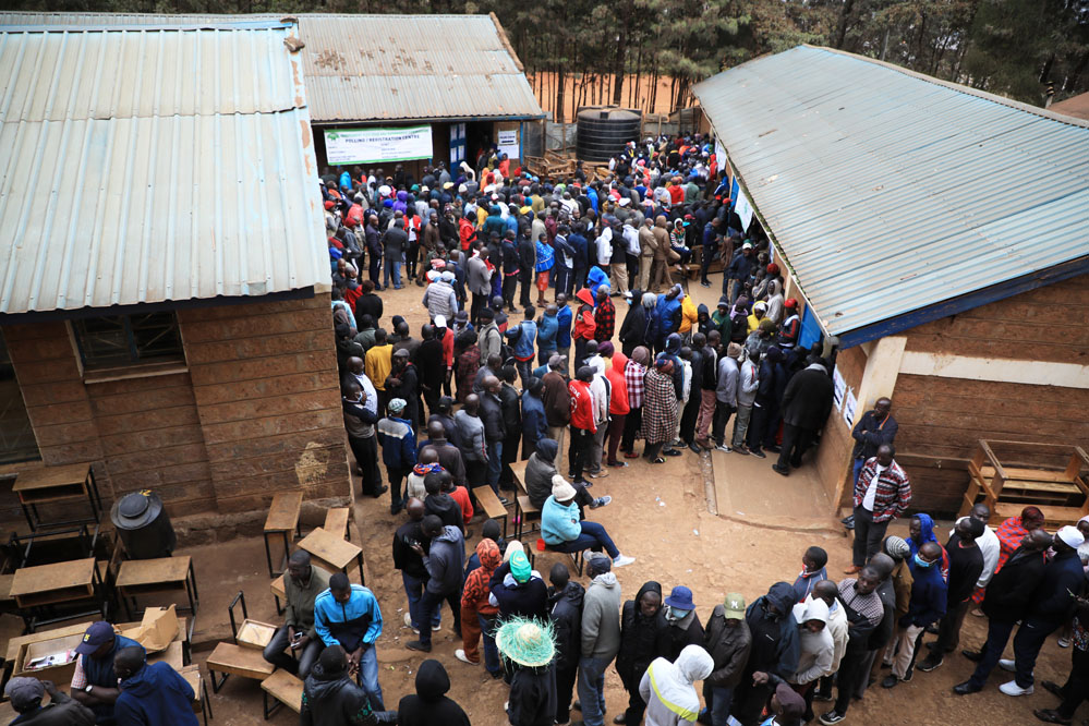 8月9日,人們在肯尼亞內羅畢基貝拉貧民區(qū)一投票站排隊參加大選投票。
