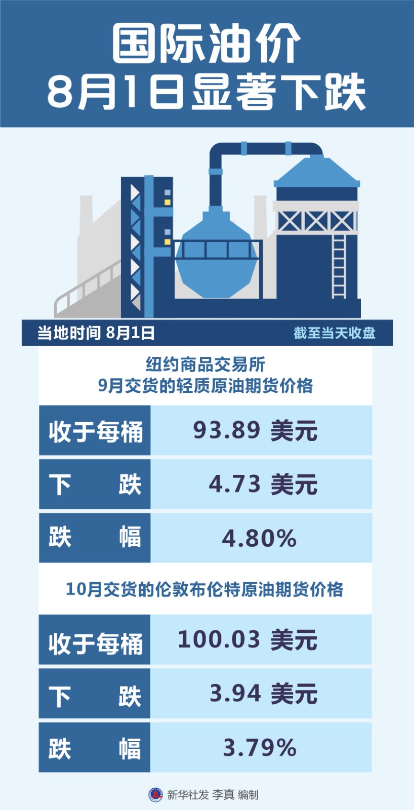 (圖表)國際油價(jià)8月1日顯著下跌