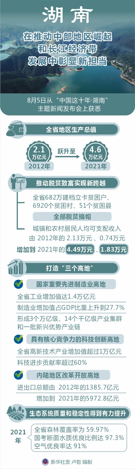 記者從8月5日舉行的“中國這十年·湖南”主題新聞發(fā)布會上獲悉,黨的十八大以來,湖南努力在推動高質(zhì)量發(fā)展上闖出新路子,在構(gòu)建新發(fā)展格局中展現(xiàn)新作為,在推動中部地區(qū)崛起和長江經(jīng)濟帶發(fā)展中彰顯新?lián)敚瑠^力譜寫新時代堅持和發(fā)展中國特色社會主義的湖南新篇章。